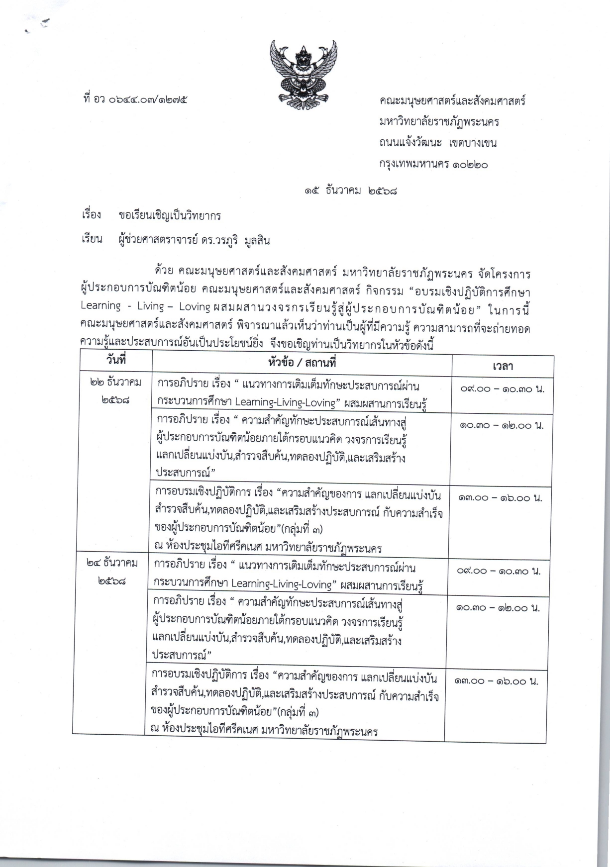 กิจกรรม อบรมเชิงปฏิบัติการศึกษา “Learning-Living-Loving” ผสมผสานวงจรการเรียนรู้สู่ผู้ประกอบการบัณฑิตน้อย